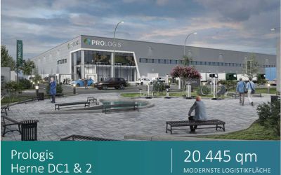 Wir begleiten den Neubau der Distribution Center 1 & 2 in Herne in der Projektsteuerung. Entwickelt von Prologis, mit insgesamt 20.445 m² modernster Logistikfläche.